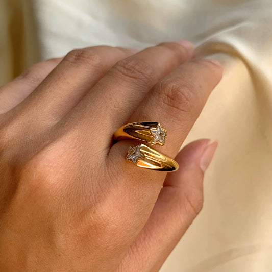 Stars : Bague dorée ornée de deux étoiles en pierres de zirconium