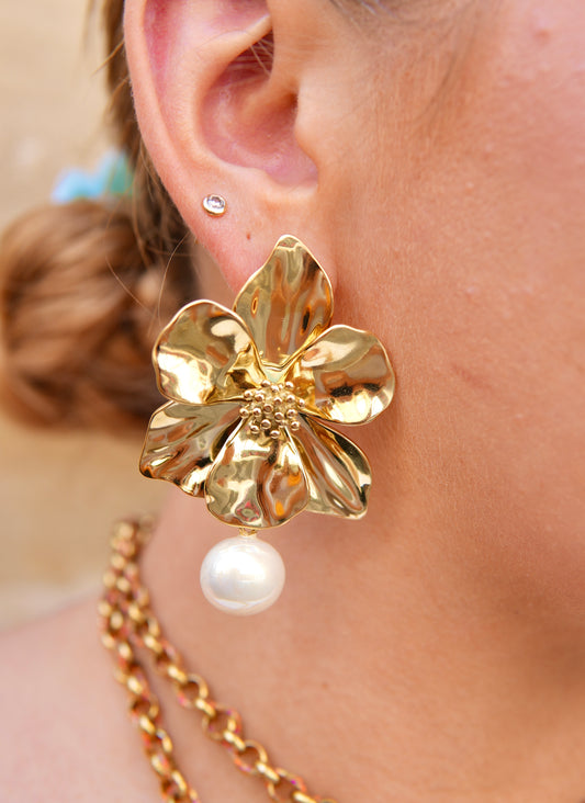 Boucles d’oreilles dorées en forme de fleur avec perle – Solène