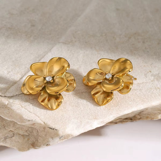 Boucles d’Oreilles Fleur Élégance – Acier Chirurgical Plaqué Or