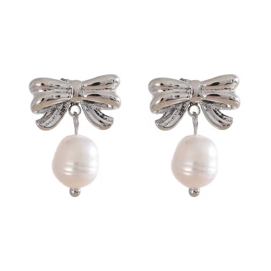 Arielle : Boucles d’oreilles nœud & perle naturelle | Élégantes et raffinées
