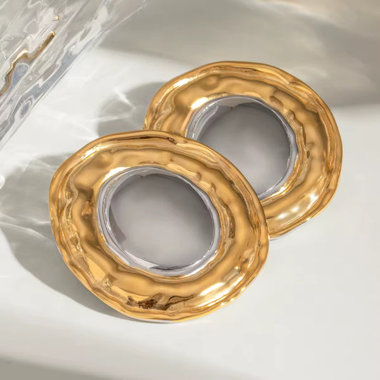 Créoles Ovales Bicolores – Acier Inoxydable Plaqué Or 18K