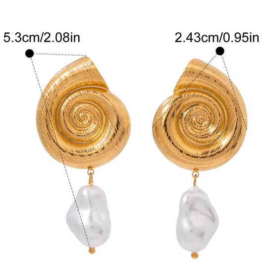 Boucles d’oreilles coquillage doré et perle baroque fantaisie