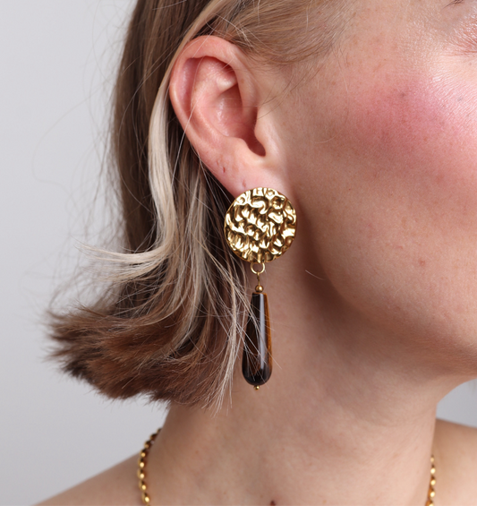 Boucles d’oreilles pendantes en œil de tigre – pierre de protection | L’Or Didon