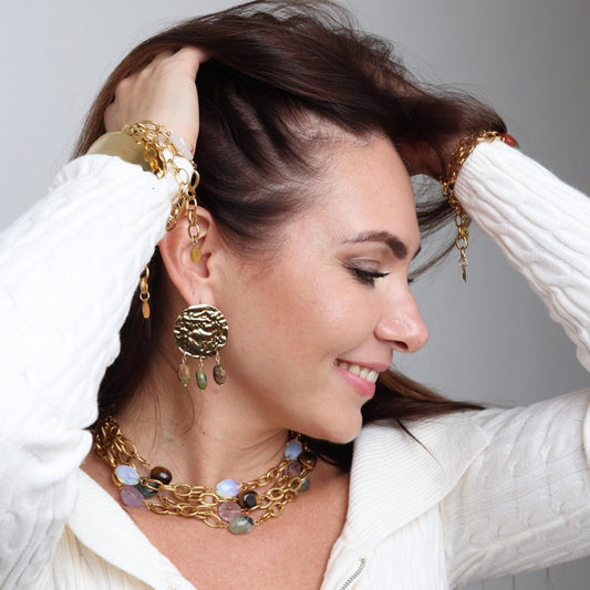 Gaïa : Boucles d'oreilles sublimées de trois pierres naturelles d'Unakite