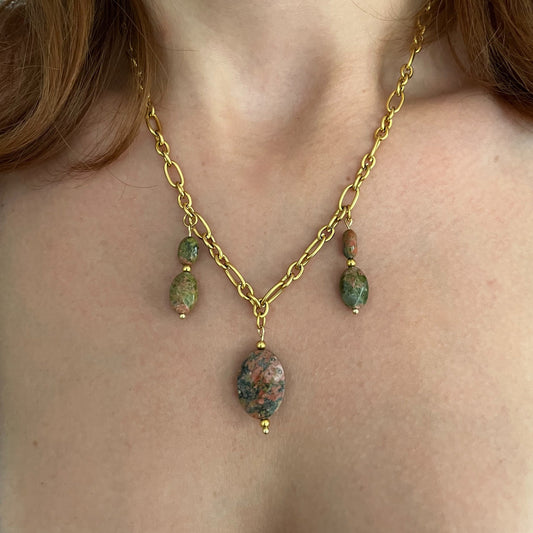 Bali : Collier aux pierres naturelles " Unakite" fait main