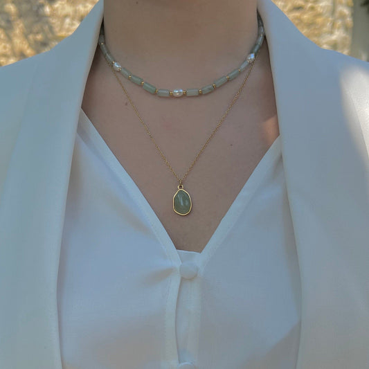 Spirituelle : Collier gravé et orné d'une pierre naturelle