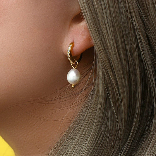 Boucles d'oreilles Edith : Mini créoles avec perle naturelle