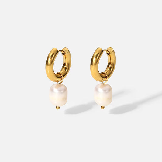 Créoles Mini Épaisses avec Perles Naturelles – Acier Chirurgical