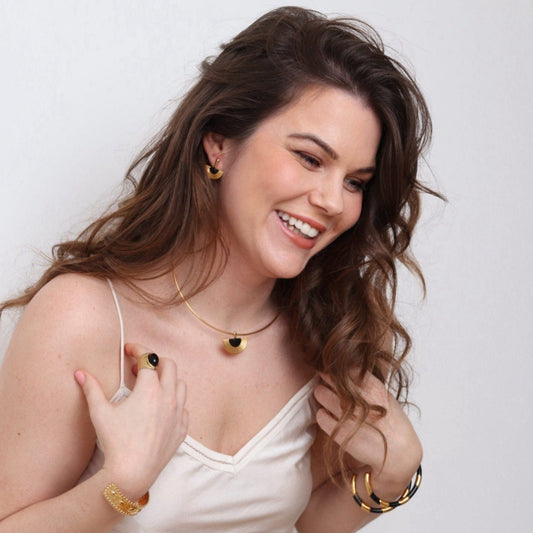 Juliette : Jonc Doré Ajustable avec Cabochons de Pierres Naturelles