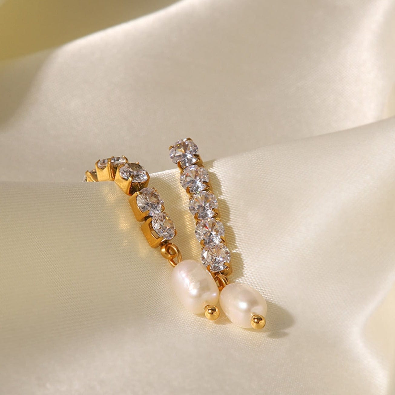 L’ensemble est sublimé de pierres de zircon blanc et de véritables perles d'eau douce.