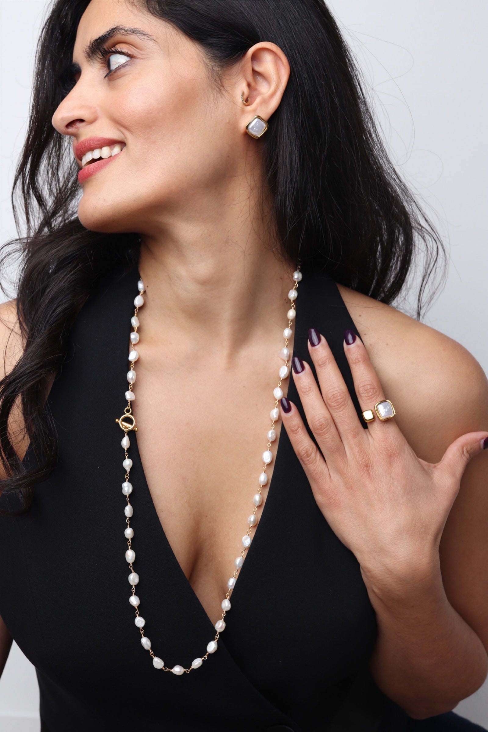 Perles naturelles et plaqué or 18k : la douceur rencontre l’intemporel.