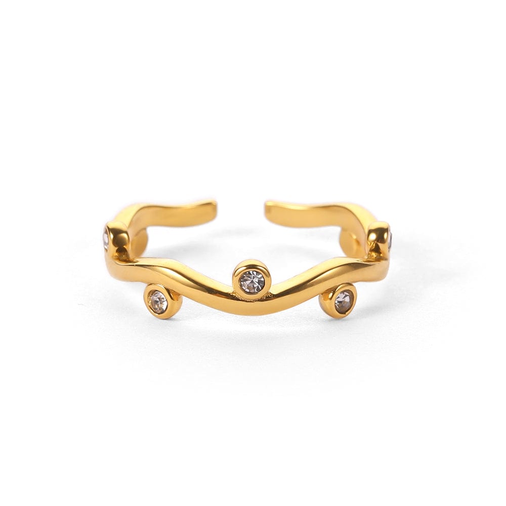 La bague Marine est une bague ajustable pour toutes les tailles, ornée de cinq pierres de zircon blanc qui ajoutent un éclat subtil, mais accrocheur, à la pièce.